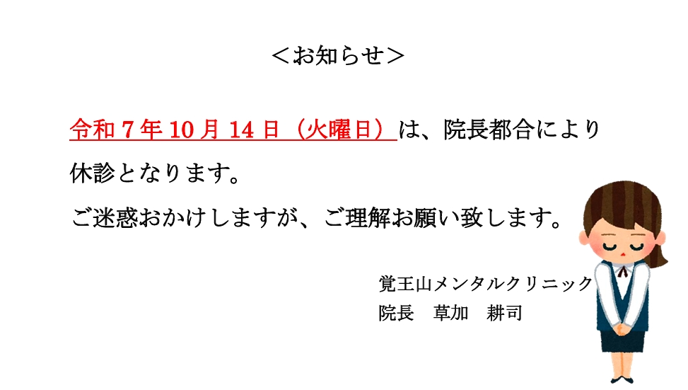 生きづらさをそのままにするべきではありません。心の不調は、時に身体の不調として表れることもあります。違和感をうまく言葉にできない場合でも、医師が丁寧にお話を伺います。お電話にてご予約を受け付けております。
