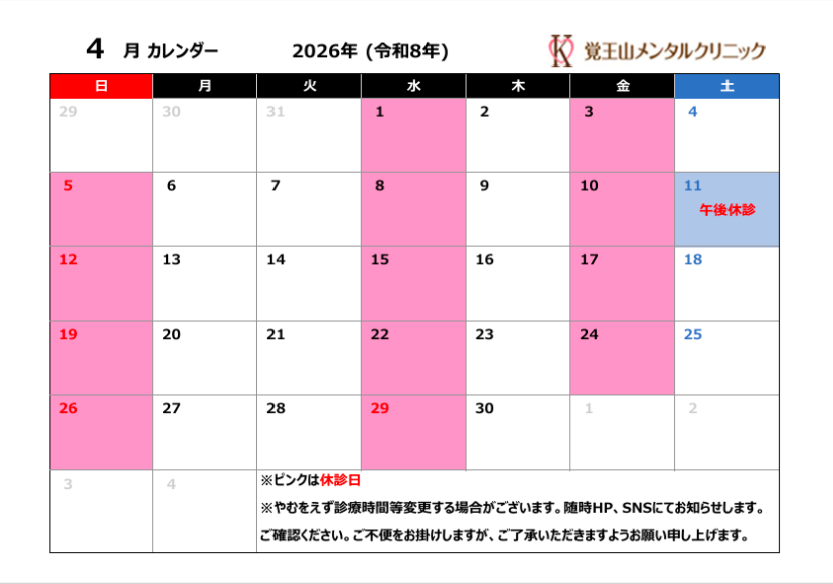 4月診療日カレンダー