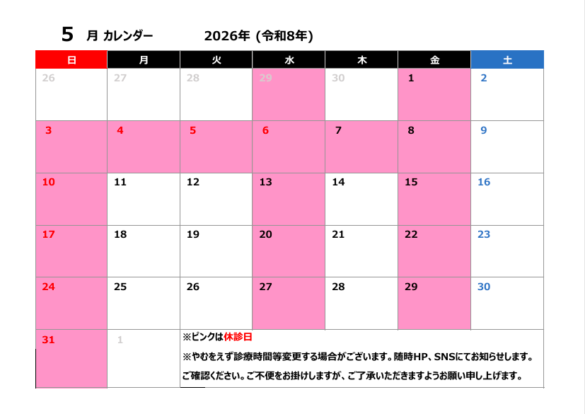 5月診療日カレンダー